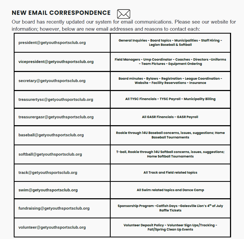Registration for the 2026 season began on Jan 1st 2026 and closes Feb 28th 2026 for Rookie - 14U BB & SB Programs; G-E-T Legion Post 354 BB & SB, Swim, and T-ball Registration closes April 30, 2026. Track and Field closes May 15, 2026